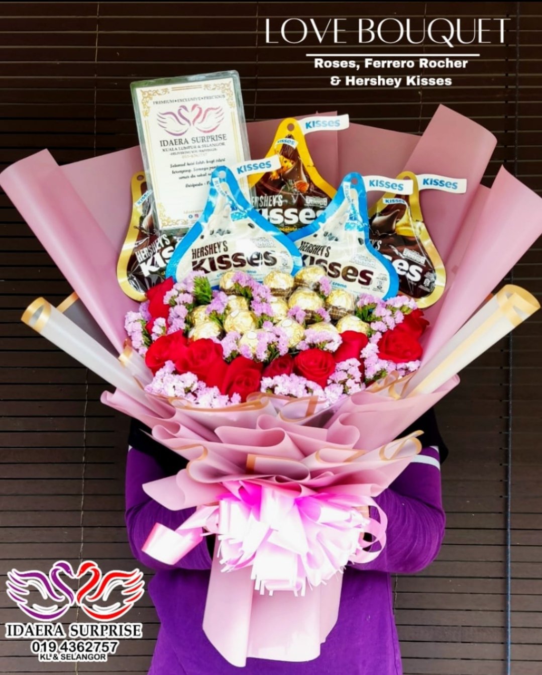 Surprise Bouquet with Red Roses, Ferrero Rocher & Hershey’s Kisses
